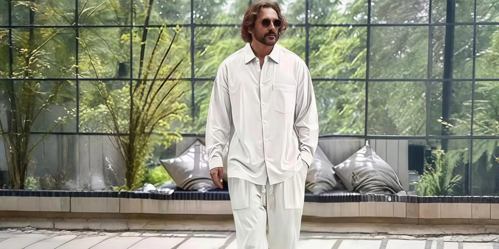 Men's Full Size Button Up Long Sleeve Shirt and Pants Plus Size